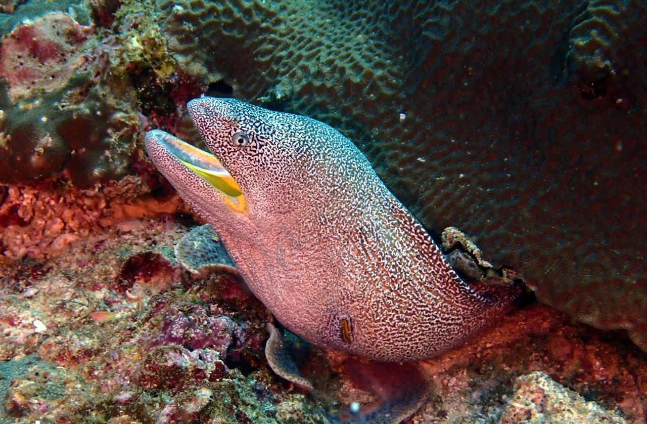 - Moray Eels peeking out from every crevice.